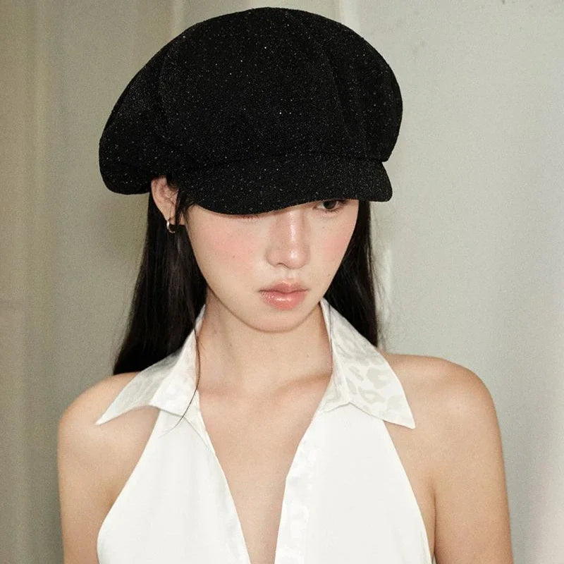 Y2K Korean Gypsy Bling Star Printed Octagonal Painter Hat Women's Spring Summer Versatile Big Head Casual Newsboy Cap Gorro Hombre